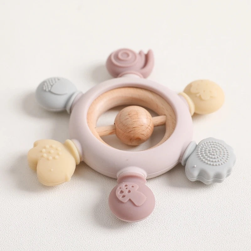 Mordedera animales del bosque hecha 100% de silicon y con anillo hecho de bambú integrado